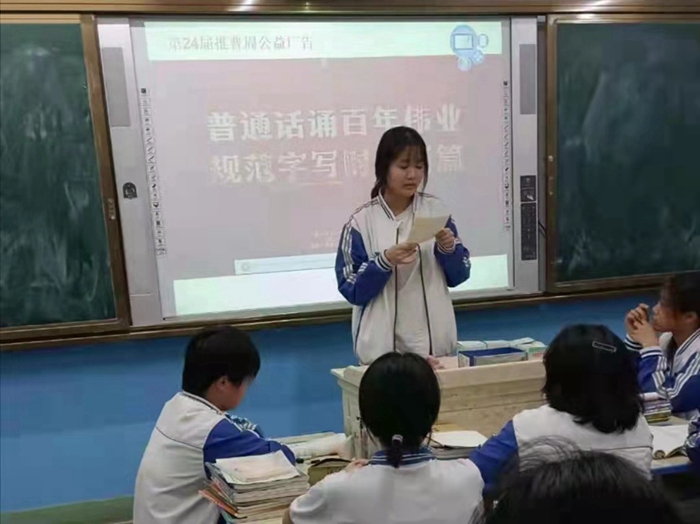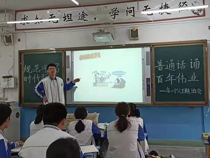 在班会上,班主任向学生普及讲好普通话、写好规范字在新时代的意义和作用,带领学生感受普通话、规范字的美。