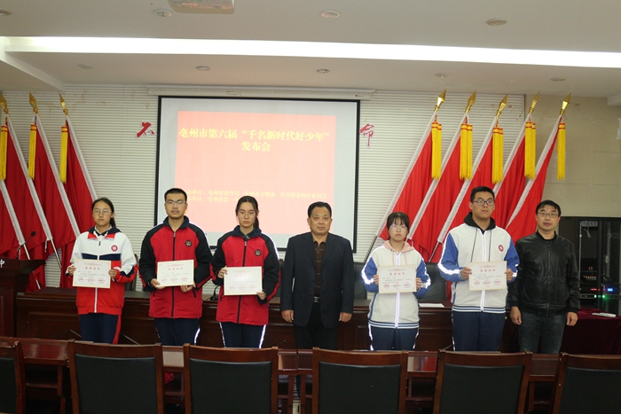 近日,第六届Bet体育365提款不到账_365bet手机在线注册_beat365英国市“千名新时代好少年”评选活动结果公布,Bet体育365提款不到账_365bet手机在线注册_beat365英国市第一中学5名优秀学生入选。11月6日,学校在行政楼四楼会议室召开第六届“千名新时代好少年”发布会,会议由政教处主任王瑞主持。