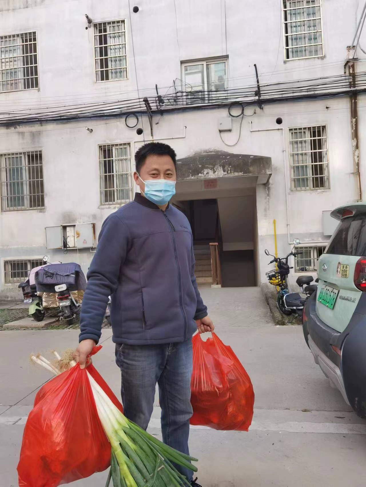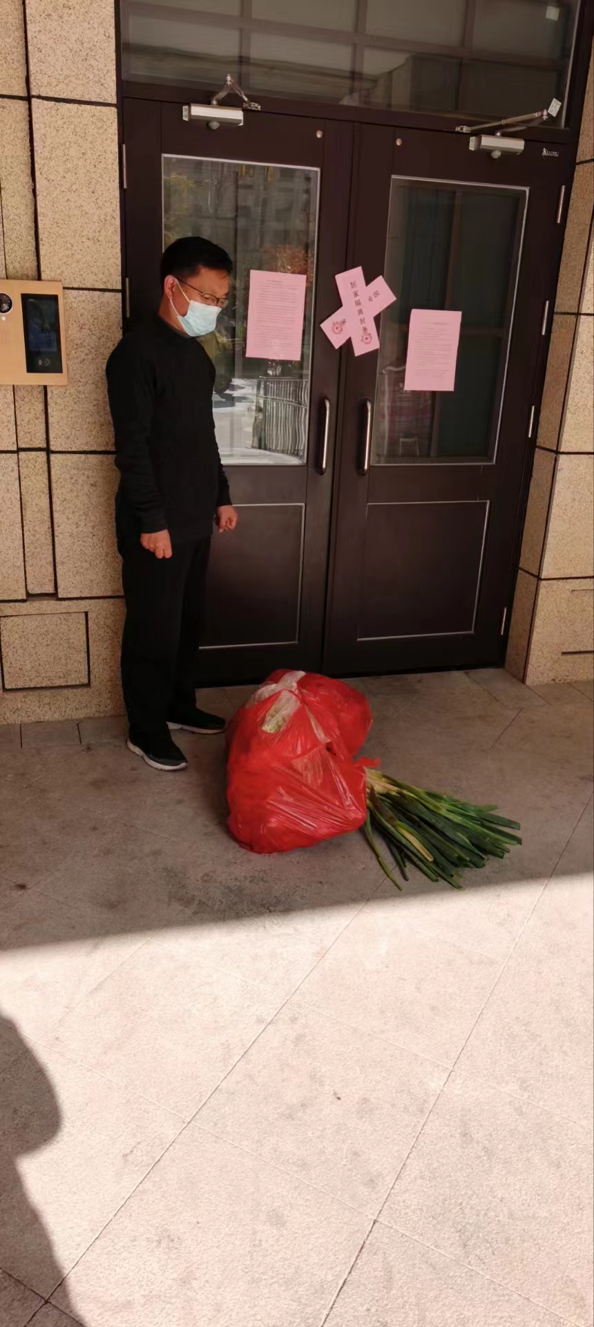 学校领导安排各部门各年级组统计被封在家教师的姓名、详细住址、联系电话,校党委专职副书记王光华组织力量统一购买蔬菜,安排相关处室和年级领导送菜到被封控教师家门口。收到蔬菜,被封教师们都非常感动。